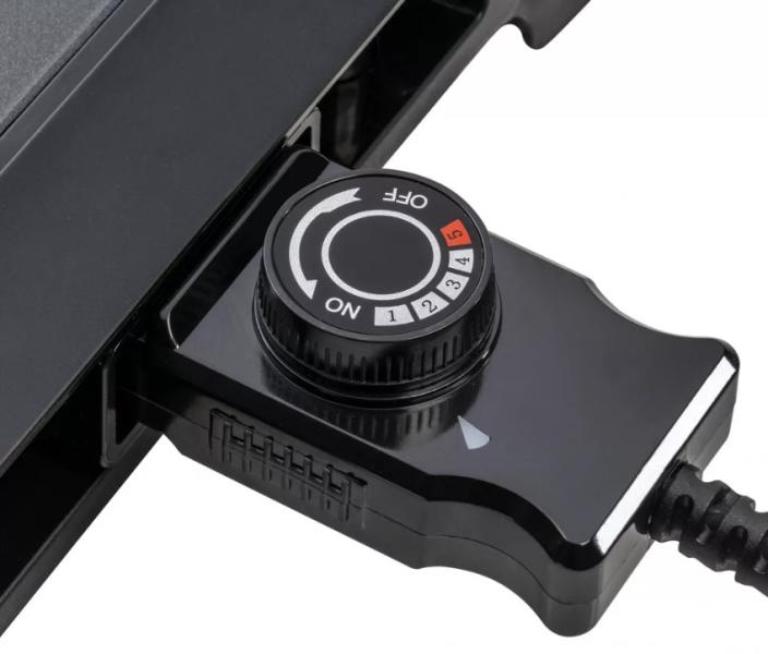 • funkciókat: Levehető, fokozatmentesen állítható hőmérséklet-kapcsoló jelzőfénnyel és túlmelegedés elleni védelemmel