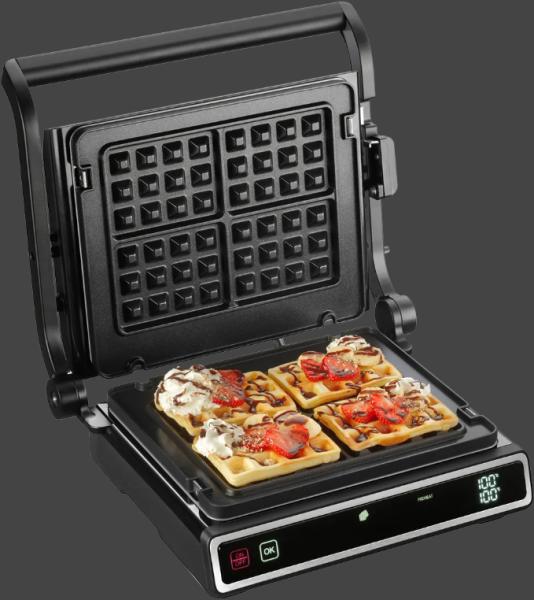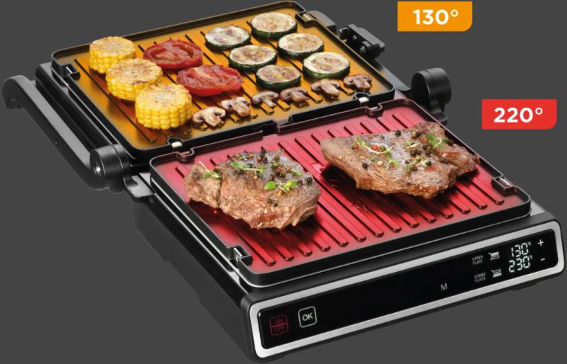A grill egyszerű kezelést kínál 11 automatikus programmal, köztük egy kézi barkács üzemmóddal. A grillsütőt az Ön igényeihez igazíthatja, és pontosan az Önnek megfelelő sütőlapokat használhatja - bordázott, sima vagy a kettő kombinációját.